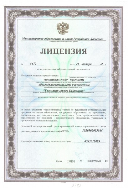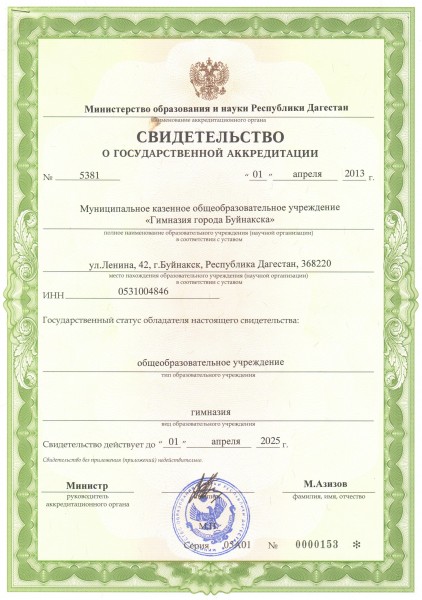 | Сокращенное наименование образовательной организации* | МБОУ "Гимназия города Буйнакска" |